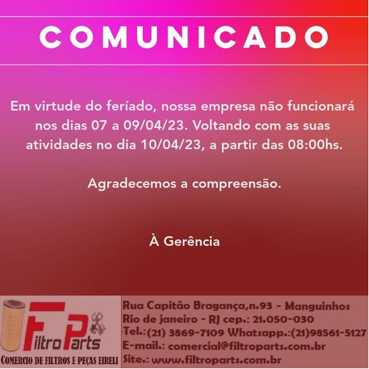 COMUNICADO IMPORTANTE - O NÃO FUNCIONAMENTO DA EMPRESA